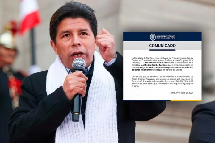La Fiscalía de la Nación, a través del Área de Enriquecimiento Ilícito y Denuncias Constitucionales, presentó una denuncia constitucional contra el expresidente de la República, Pedro Castillo Terrones, por la presunta comisión del delito de negociación incompatible o aprovechamiento indebido del cargo y nombramiento ilegal, en agravio del Estado.