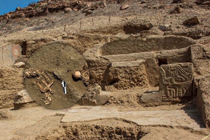 Además del hallazgo de esta notable estructura, los arqueólogos descubrieron los restos óseos de dos individuos adultos que fueron enterrados cerca del templo. “Falta determinar el perfil biológico de ambas personas que fueron enterrados siguiendo un patrón prehispánico andino clásico del periodo Formativo, de manera flexionada y reposando sobre uno de los lados del cuerpo, según el cual estar cerca de los espacios rituales era un privilegio particular que solo tenían los grupos de poder y las élites gobernantes”, explicó.