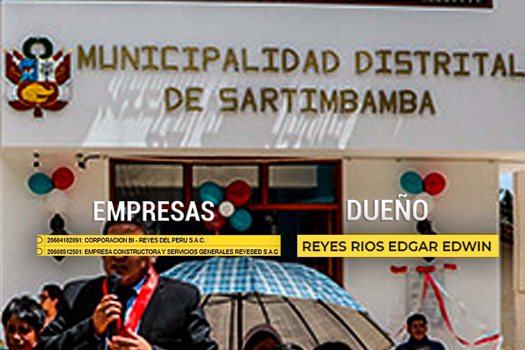 En esa línea, se identificó que dos de las citadas empresas tienen a un mismo dueño, identificado como Edgar Reyes Ríos. Se tratan de las contratistas Corporación Bi-Reyes del Perú S.A.C.  y Empresa Constructora y Servicios Generales Reyesed S.A.C, quienes entre ambas han recibido aproximadamente 2 millones de soles del municipio de Sartimbamba.