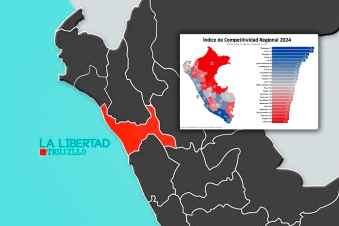 El Índice de Competitividad Regional (INCORE) 2024, elaborado por el Instituto Peruano de Economía (IPE), posicionó a La Libertad en el noveno lugar del ranking, que evalúa el desarrollo económico y social de cada región a través de seis pilares fundamentales: entorno económico, infraestructura, salud, educación, laboral e instituciones, divididos en un total de 40 indicadores.