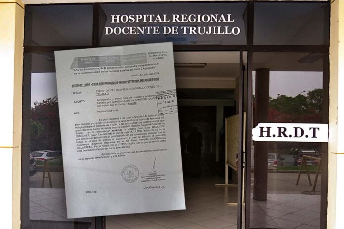 Macronorte accedió al Oficio N°2900-2024-REGIONPOLICIAL-LL/DIVPOST/CPNP. ELALAMBRE-SIDF, donde el Comandante Ronal Rodríguez Rodríguez, informa sobre la intervención realizada al médico Juan Luis Namuche Quiñonez, detenido el pasado jueves 11 de julio por presuntamente robar medicamentos del Hospital Regional Docente de Trujillo.
