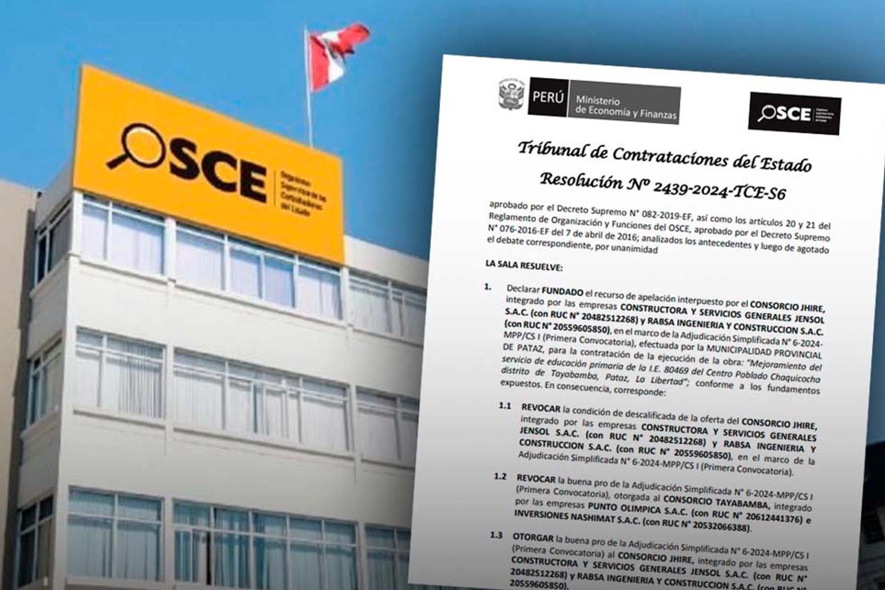Posteriormente, mediante Escrito N° 02, presentado el 28 de mayo del presente año, el Consorcio Jhire, integrado por Constructora y Servicios Generales Jensol S.A.C y Rabsa Ingeniería y Construcción S.A.C., interpuso ante el Tribunal de Contrataciones del Estado (TCE) un recurso de apelación contra la descalificación de su oferta en el citado proceso de licitación.