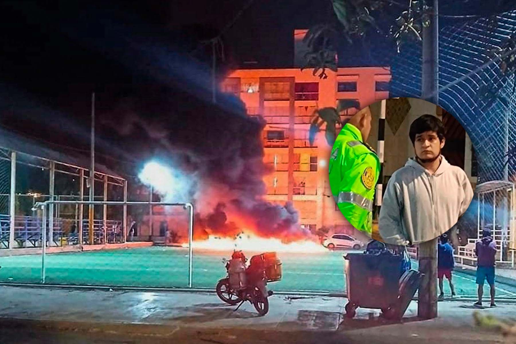 El gerente de Desarrollo Social, Carlos Sánchez, narró que el último domingo 28 de julio, al promediar las 10:00 p.m. se advirtió fuego abierto en el gras sintético, que, según lo relatado por los vecinos, fue provocado por Luis Quilcate Tejada, quien reside en un departamento frente al campo dañado.