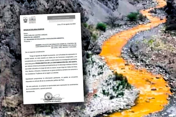 «Ya oficialicé al ministro de Ambiente este tema, señalando que esta agua es importante, debido a que más del 60% del agua que consumimos en La Libertad es del río Santa, que es tratada en el Proyecto Especial Chavimochic», indicó Alva a Macronorte.pe.