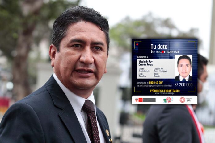 El Ministerio del Interior, a través del Programa de Recompensas, aumentó a 200 mil soles la suma con la finalidad de dar con la captura del exgobernador de Junín y fundador del partido político Perú Libre Vladimir Cerrón Rojas.