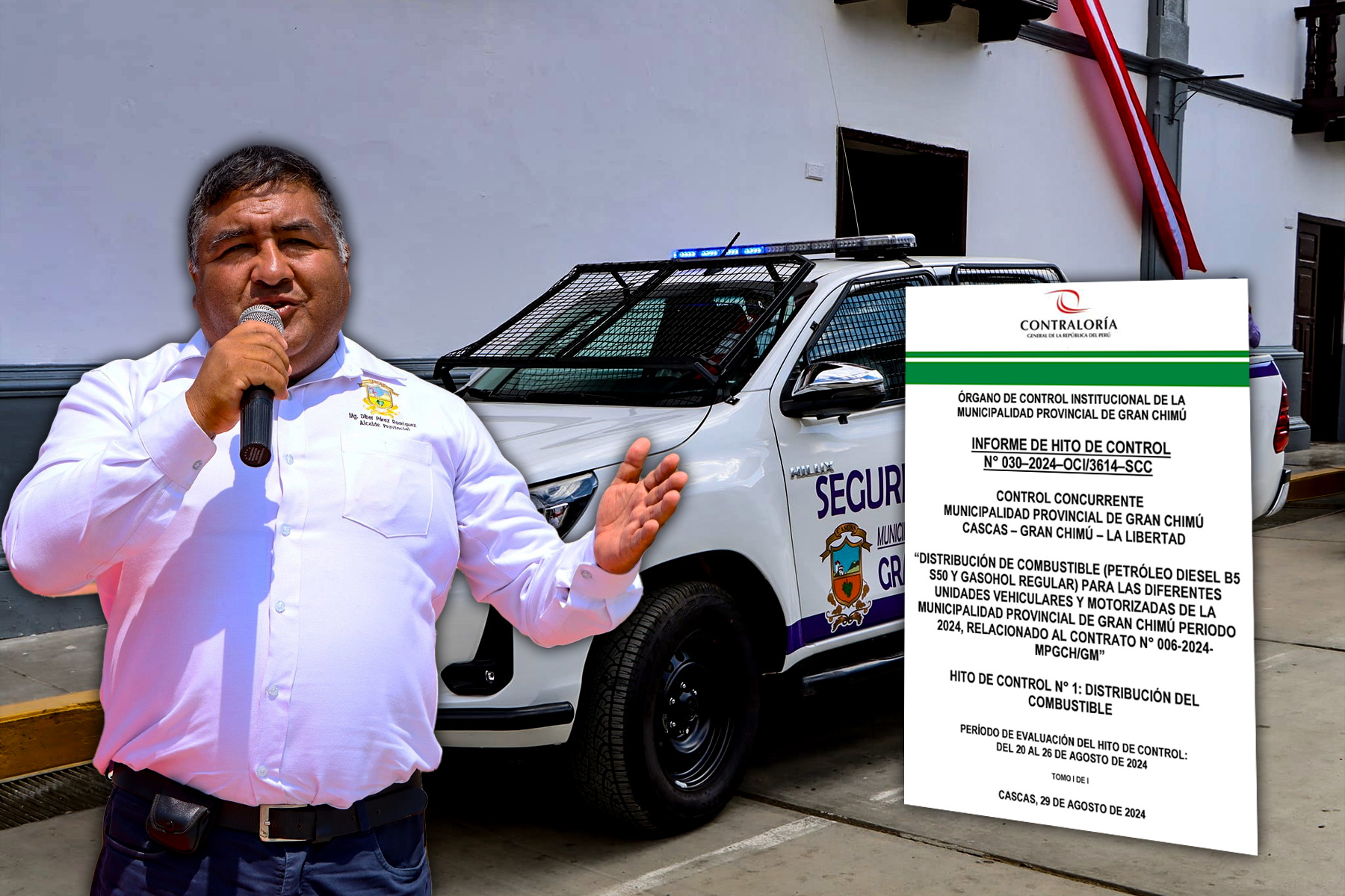 El pasado 13 de marzo del año en curso, la Municipalidad Provincial de Gran Chimú, bajo la dirección de Diber Pérez Rodríguez, firmó contrato con Wilson Alfredo Narro Villalobos, dueño del grifo Servicentro Narro, para la “Adquisición de combustible (Petróleo Diesel B5 S50 y Gasohol regular) para las diferentes unidades vehiculares y motorizadas de la Municipalidad Provincial de Gran Chimú periodo 2024”, cuyo importe contractual asciende a S/ 359 490.