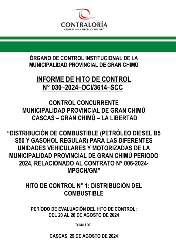 Lo señalado en esta nota periodística figura en el Informe de Hito de Control N° 030-2024-OCI/3614-SCC, el cual fue informado al alcalde provincial de Gran Chimú, Diber Pérez, para que tome las acciones correspondientes.