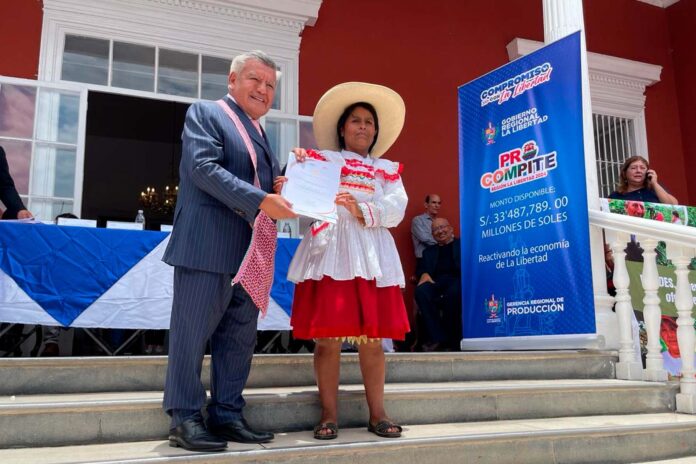 Los ganadores del fondo concursable Procompite La Libertad 2023 ya están recibiendo las donaciones por concepto de cofinanciamiento de parte del Gobierno Regional de La Libertad, a través de la Gerencia Regional de Producción, con una inversión histórica de S/25,320,139.90 millones, cifra nunca antes vista en ninguna gestión regional, y con un total de 75 Agentes Económicos Organizados (AEO) beneficiados en las 12 provincias y 84 distritos de la región La Libertad.