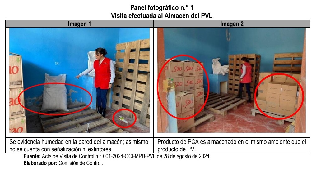 De otro lado, se tiene conocimiento que el almacén destinado para albergar los productos alimenticios del PVL, carecen de las condiciones necesarias para su conservación, situación que afectaría el estado y seguridad de estos alimentos.