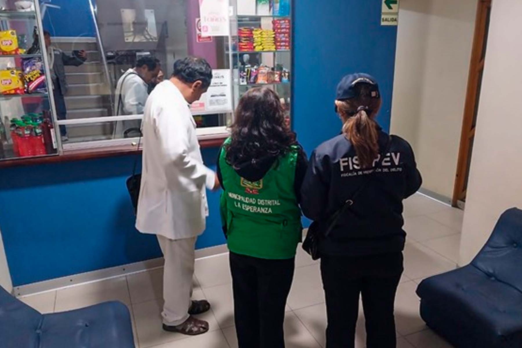 La fiscal provincial Leyden Beatriz Alvarado Olaya, Las fiscales adjuntas provinciales Lessli María Cabeza Jave y Teresa de Jesús Cueva Alva a cargo del operativo intervinieron en hospedajes ubicados en la calle Los Olivos, Grau y Unión del distrito de Huanchaco y la cuadra 17 de la calle Atahualpa en La Esperanza.