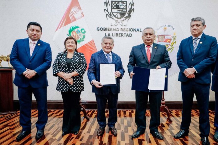 La autoridad liberteña anunció la obra luego de firmar un convenio de cooperación institucional con el presidente de la Corte Superior de Justicia de La Libertad, Víctor Burgos Mariños, en la que se otorga facultades al GORE para ejecutar la construcción del local, ahora que la normativa nacional lo permite para invertir en temas de justicia.