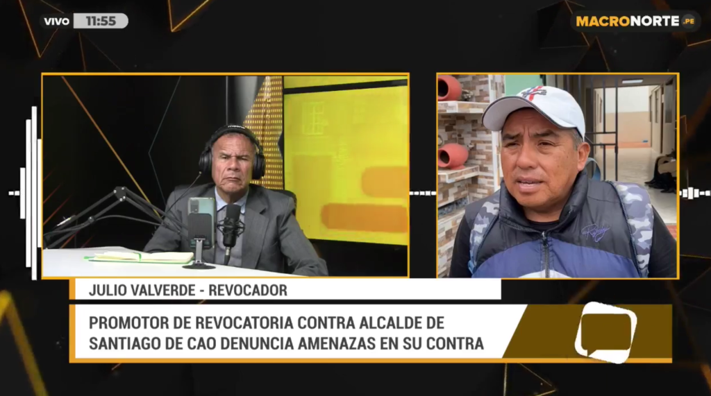 En diálogo con Macronorte.pe, Julio Valverde Diestra, impulsor de la revocatoria de Felipe Cerna García, alcalde del distrito de Santiago de Cao, manifestó que desde que inició con este proceso viene siendo víctima de amenazas de muerte.