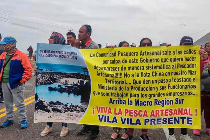 Pescadores artesanales de las regiones de Tacna, Moquegua y Arequipa han iniciado un paro que implica el bloqueo de varias vías ante la falta de medidas del Gobierno por la presencia de barcos chinos en el mar peruano.