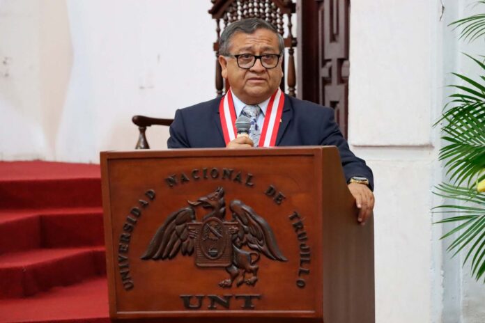 La Universidad Nacional de Trujillo (UNT) conmemoró sus 193 años de instalación con una solemne ceremonia central realizada en el auditorio césar vallejo. El evento, que reunió a las principales autoridades de la universidad, fue encabezado por el rector, Dr. Carlos Vásquez Boyer, quien estuvo acompañado por el vicerrector Académico, Dr. Juan Villacorta Vásquez, y el vicerrector de Investigación, Dr. Arturo García Pérez.
