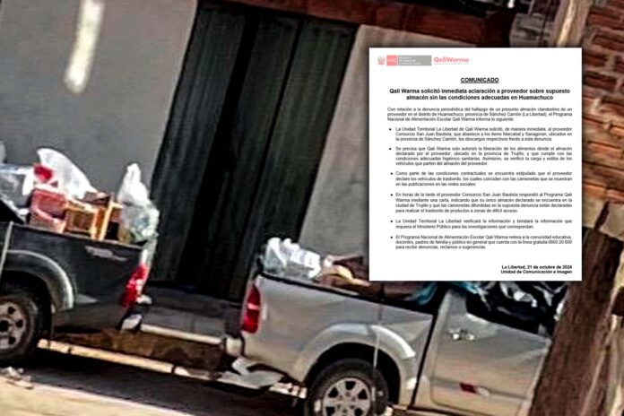 El pasado 21 de octubre se reveló un aparente almacén clandestino y que no cumpliría con las condiciones mínimas para acopiar alimentos del Programa Nacional Qali Warma, ubicado en la provincia de Huamachuco.