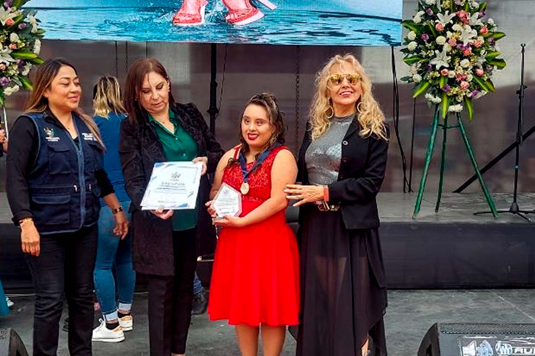 En el concurso la gerencia de Desarrollo e Inclusión Social del GORE La Libertad, dirigida por la Dra. Vanesa Blas Villar entregó un reconocimiento a la destacada nadadora nacional y liberteña, Leída Melissa Reyna Padilla, que participó en los juegos latinos panamericanos de las olimpiadas 2024, en Asunción- Paraguay, ganando la medalla de plata, estilo espalda en segundo lugar, quinto puesto en estilo libre y cuarto puesto en postas 4 x 50 estilo libre, un orgullo para todas las con habilidades especiales-