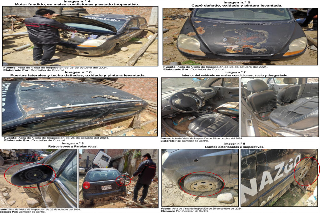 De otro lado, el órgano de control precisa que en el 2016 el Programa Nacional de Bienes Incautados (Pronabi) cedió un automóvil marca Chevrolet a la citada comuna, bajo la modalidad de Asignación en Uso Temporal, con la finalidad de destinarlo al servicio de Seguridad Ciudadana. Sin embargo, se ha constatado que a la fecha este vehículo se encuentra inoperativo desde el 2022, resaltando que la gestión del actual alcalde de Julcán, Tarsis Reyes, “no ha asignado presupuesto para reparación y/o mantenimiento, por lo que, actualmente dicho vehículo se encuentra en estado inoperativo y en malas condiciones de almacenamiento”.