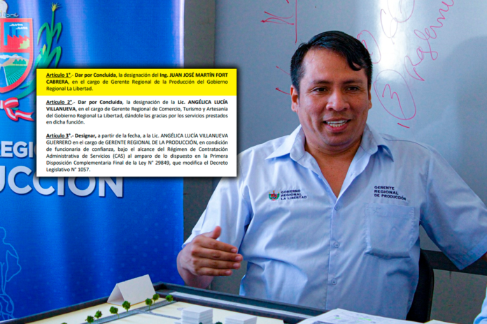 «Dar por concluida, la designación del Ing. JUAN JOSÉ MARTÍN FORT CABRERA, en el cargo de Gerente Regional de la Producción del Gobierno Regional La Libertad», indica la resolución.