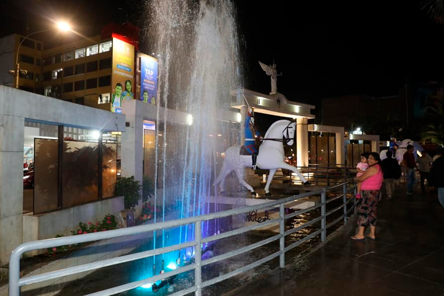 Las recuperadas y mejoradas piletas ubicadas a lo largo de la Alameda de Los Héroes ahora tienen juegos de coloridas luces que serán del total agrado de los niños durante el mes navideño y las vacaciones escolares.