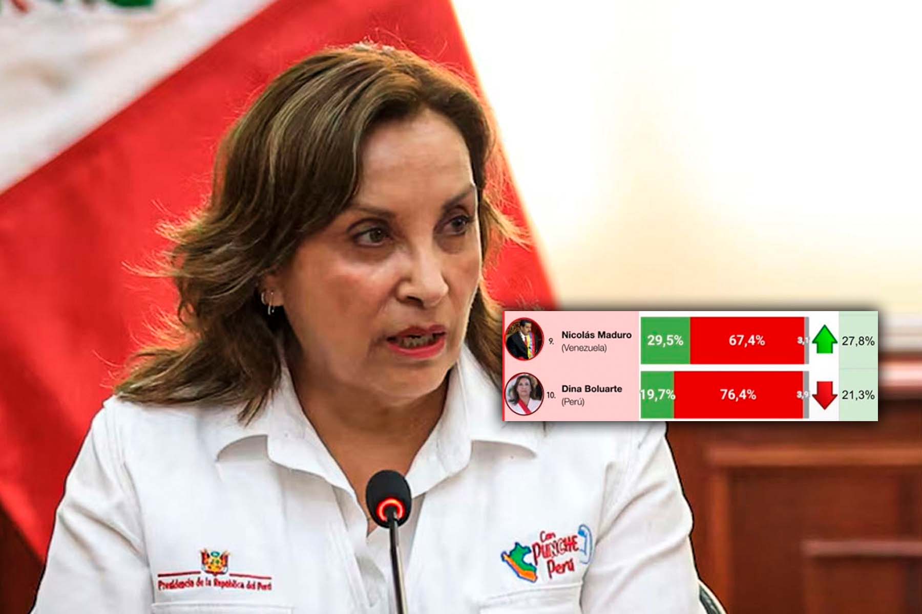 De acuerdo a la última encuesta de CB Consultora Opinión Pública, la presidenta del Perú, Dina Boluarte Zegarra, cierra el 2024 como la presidenta peor calificada de Sudamérica, ocupando el último lugar de la lista de 10 mandatarios y por debajo del dictador de Venezuela, Nicolás Maduro