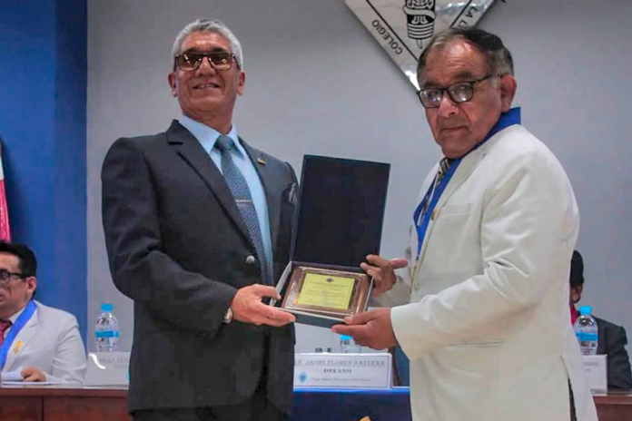 El reconocimiento, consiste en una placa recordatoria y una resolución, le fue otorgado por el Decano del Colegio Químico Farmacéutico de La Libertad, Dr. Jaime Flores Ballena, en presencia de autoridades y directivos gremiales. El distinguido profesional, es jefe del Servicio de Farmacotecnia del Hospital Belén.
