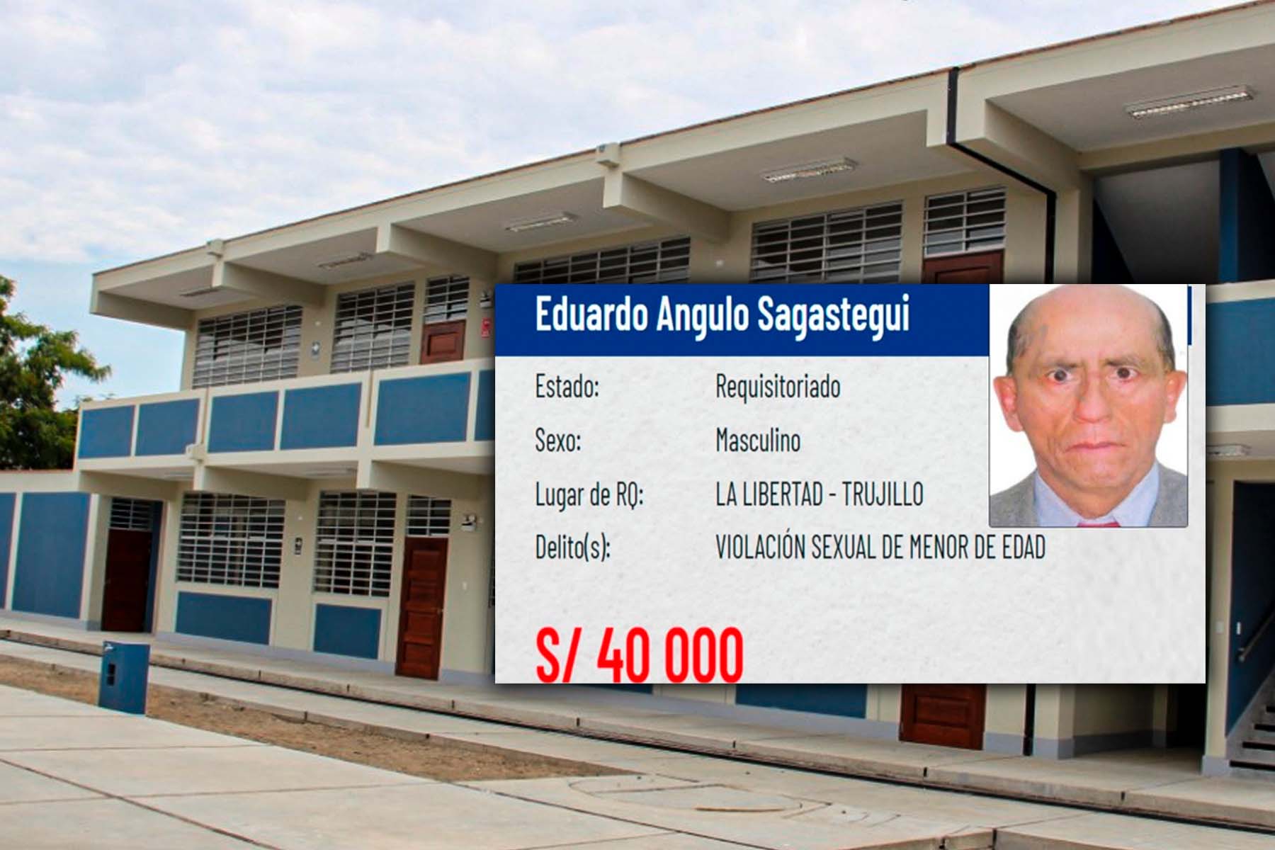 El Ministerio Interior (Mininter) incluyó en el Programa de Recompensas al director y docente de 64 años de colegio de la provincia de Gran Chimú, Eduardo Angulo Sagastegui, por contar con prisión preventiva por el delito de violación sexual contra su alumna.