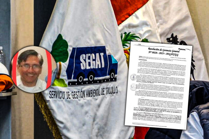 Mediante Resolución de Gerencia General N° 0028-2025-SEGAT/GG, fue cesado Marco Antonio Oruna Lara del cargo de confianza de jefe de la Oficina de Informática del Servicio de Gestión Ambiental de Trujillo (Segat), puesto que desempeñaba desde septiembre del año pasado.