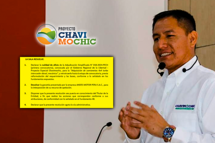 En esa línea, mediante Resolución N°00369-2025-TCE-S1, el Tribunal de Contrataciones del Estado dispuso declarar la nulidad de oficio de la Adjudicación Simplificada convocada por el Proyecto Especial Chavimochic, para la “Adquisición de camionetas 4×4 turbo intercooler diesel, mecánico”, y retrotraerlo hasta la etapa de convocatoria, previa reformulación del requerimiento y las bases.
