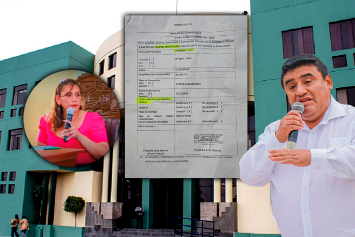 Sin embargo, tras realizar una inspección en el lugar, la regidora descubrió que el césped sembrado no correspondía al solicitado en la orden de compra, lo que generó sospechas sobre la ejecución del contrato.
