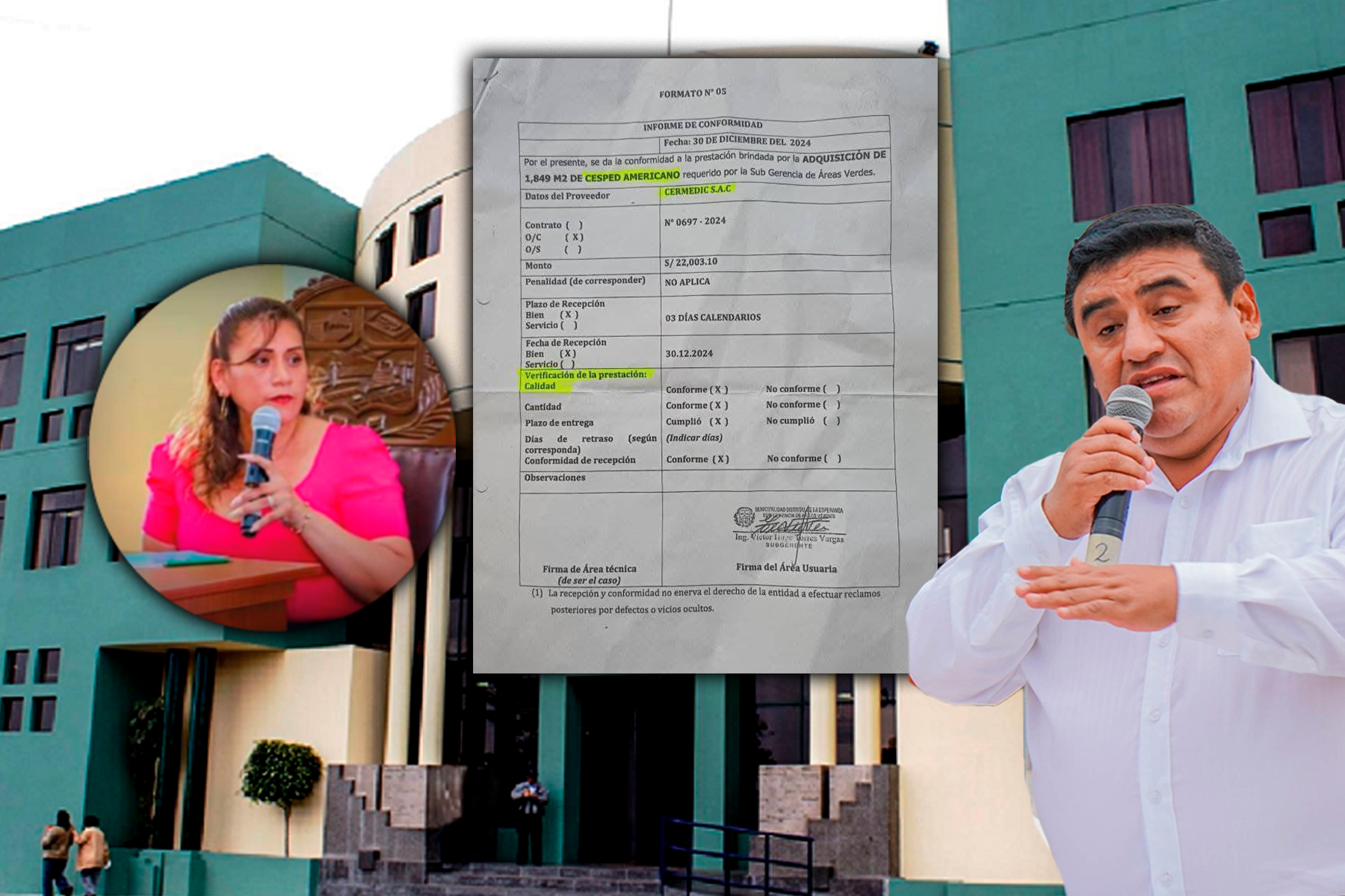 En esa línea, acudió hasta el área de almacén, donde le comunicaron que el grass solicitado aún no había llegado. No, obstante, se reveló que con fecha 30 de diciembre 2024, se había emitido la “Conformidad por la Compra” al contrato N° 0697-2024, evidenciando que la municipalidad de La Esperanza habría validado la entrega del producto sin haberlo recibido realmente.
