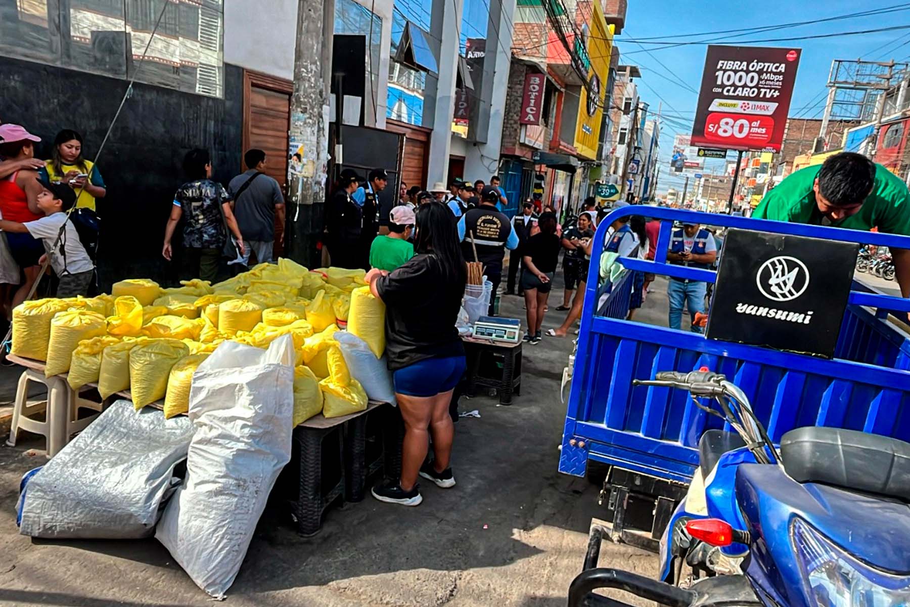 El comercio informal que había tomado las cuadras 4, 5 y 6 de la avenida Sánchez Carrión se había convertido en una zona de vendedores ambulantes que se colocaban desde tempranas horas del día para ofrecer sus artículos de primera necesidad como cereales, legumbres, papa, venta de carnes rojas y blancas, frutas, zapatos, ropa, frazadas y todo tipo de mercadería, sin respetar el orden y distanciamiento social indicado por el Ministerio de Salud.