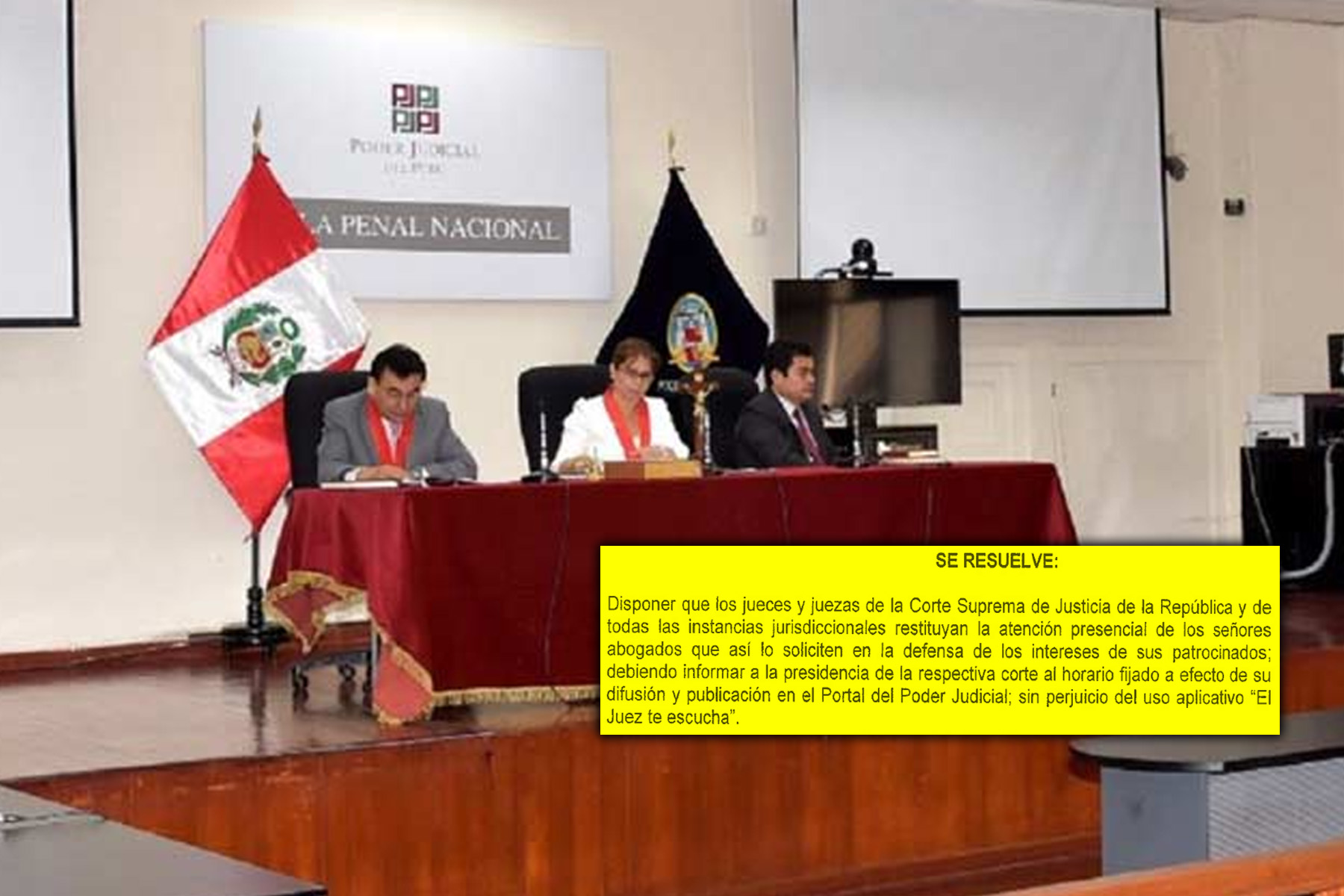 La referida resolución indica que la atención podría realizarse a través del aplicativo informático “El juez te escucha, programa tu cita”, alojado en el portal web del Poder Judicial.