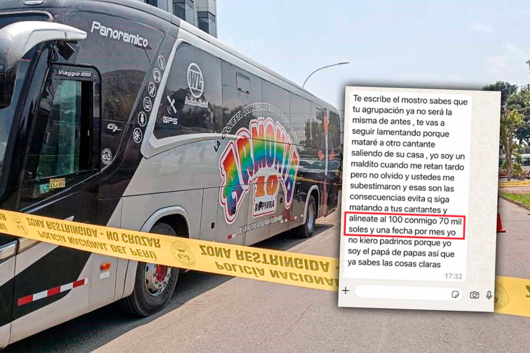 “Te escribe el mostro sabes que tu agrupación ya no será la misma de antes, te vas a seguir lamentando porque mataré a otro cantante saliendo de su casa, yo soy un maldito cuando me retan tardo pero no olvido y ustedes me subestimaron y esas son las consecuencias evita que siga matando a tus cantantes y alineate al 100 conmigo y 70 mil soles y una fecha por mes yo no kiero padrinos porque yo soy el papá de papas así que ya sabes las cosas claras”, dice uno de los mensajes extorsivos enviados a través de Whats App.