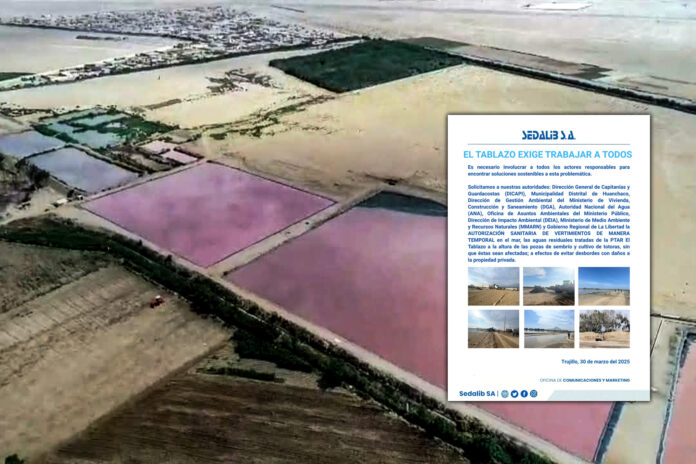 Ante la intensa lluvia registrada el pasado sábado 29 de marzo del 2025, Sedalib informó que la capacidad de almacenamiento de las aguas residuales tratadas en la Planta de Tratamiento de Aguas Residuales (PTAR) El Tablazo, en el distrito de Huanchaco, se ha visto afectada e imposible de manejar.
