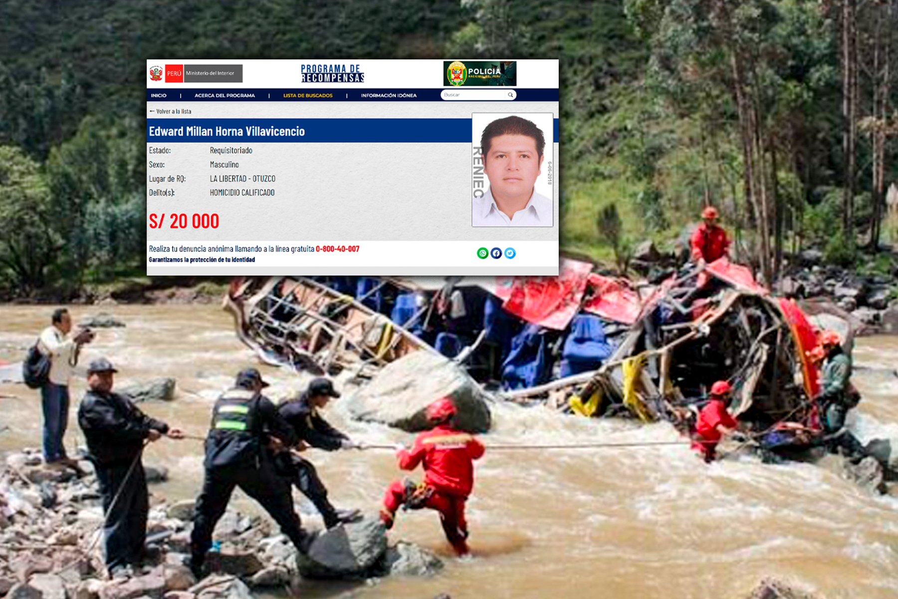 El gerente de la empresa de transportes Horna está incluido en la lista de los más buscados de la Policía Nacional y hasta la fecha no ha podido efectuarse su captura, pese a que tiene una recompensa de 20 mil soles por parte del Mininter.