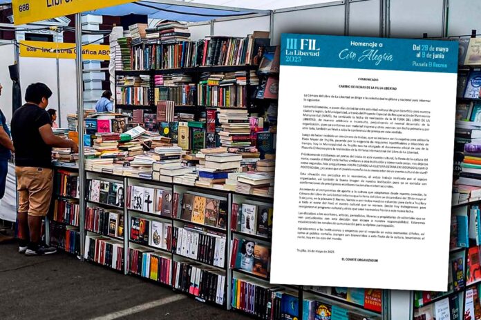 La Cámara del Libro de La Libertad aclaró que la Feria Internacional del Libro de La Libertad ha cambiado de fecha por una decisión “arbitraria e inconsulta”, a solo pocos días de su inicio, lo cual además ha generado perjuicios económicos, institucional e incluso moral a un esfuerzo que busca darle a Trujillo y la región liberteña un evento cultural en medio de la crisis de inseguridad que se vive.