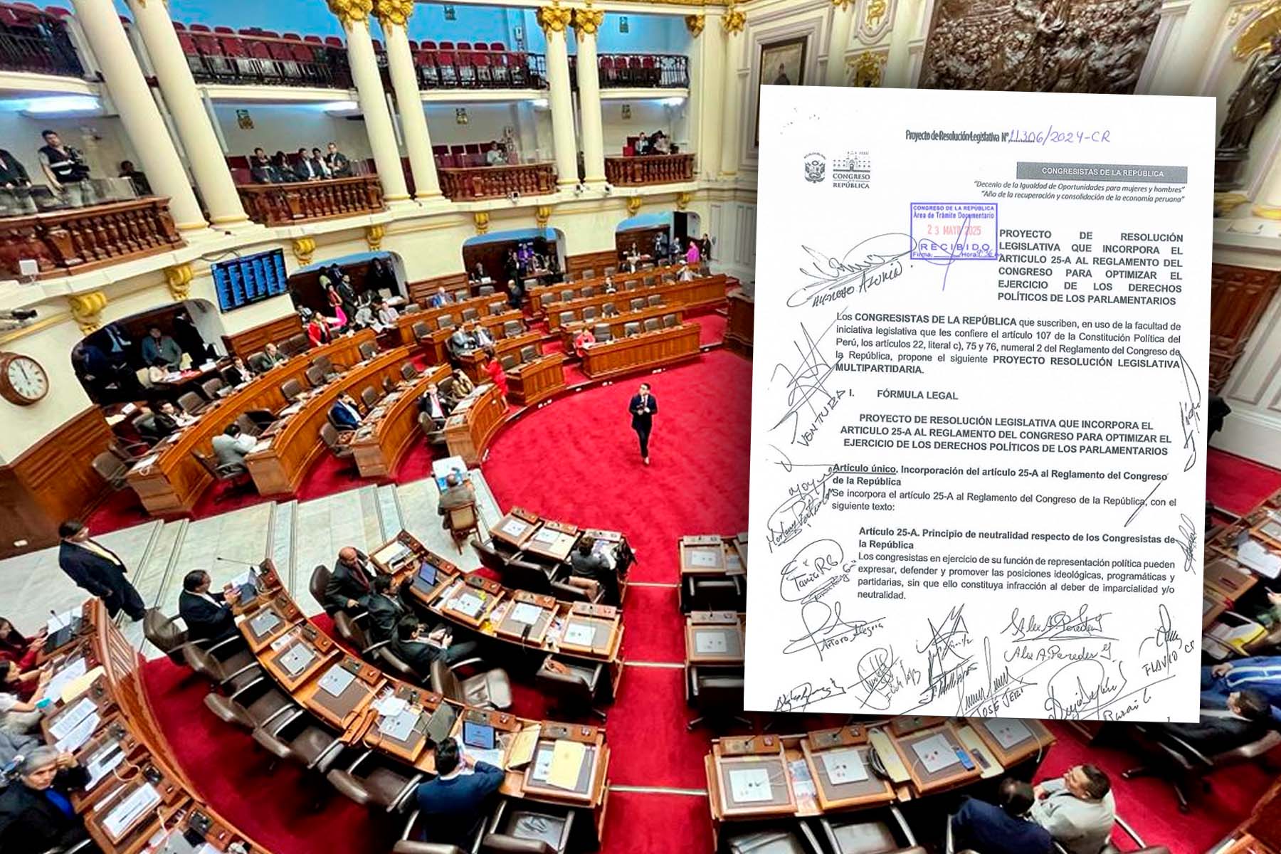 El pasado 23 de mayo, Fuerza Popular, Perú Libre y otras bancadas plantearon el proyecto de ley 11306/2024-CR, a fin de incorporar un artículo al reglamento del Congreso bajo la idea de “optimizar el ejercicio de los derechos políticos”, y de esta manera buscar cambiar el reglamento del Parlamento para realizar campaña política durante su semana de representación.