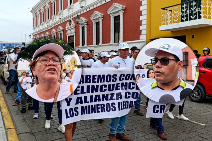 Entre los manifestantes se encontraban mineros formales que trabajan con la empresa Poderosa, quienes denunciaron a la minería informal por la creciente criminalidad y negaron que dicha empresa minera esté operando tras la restricción del Gobierno.