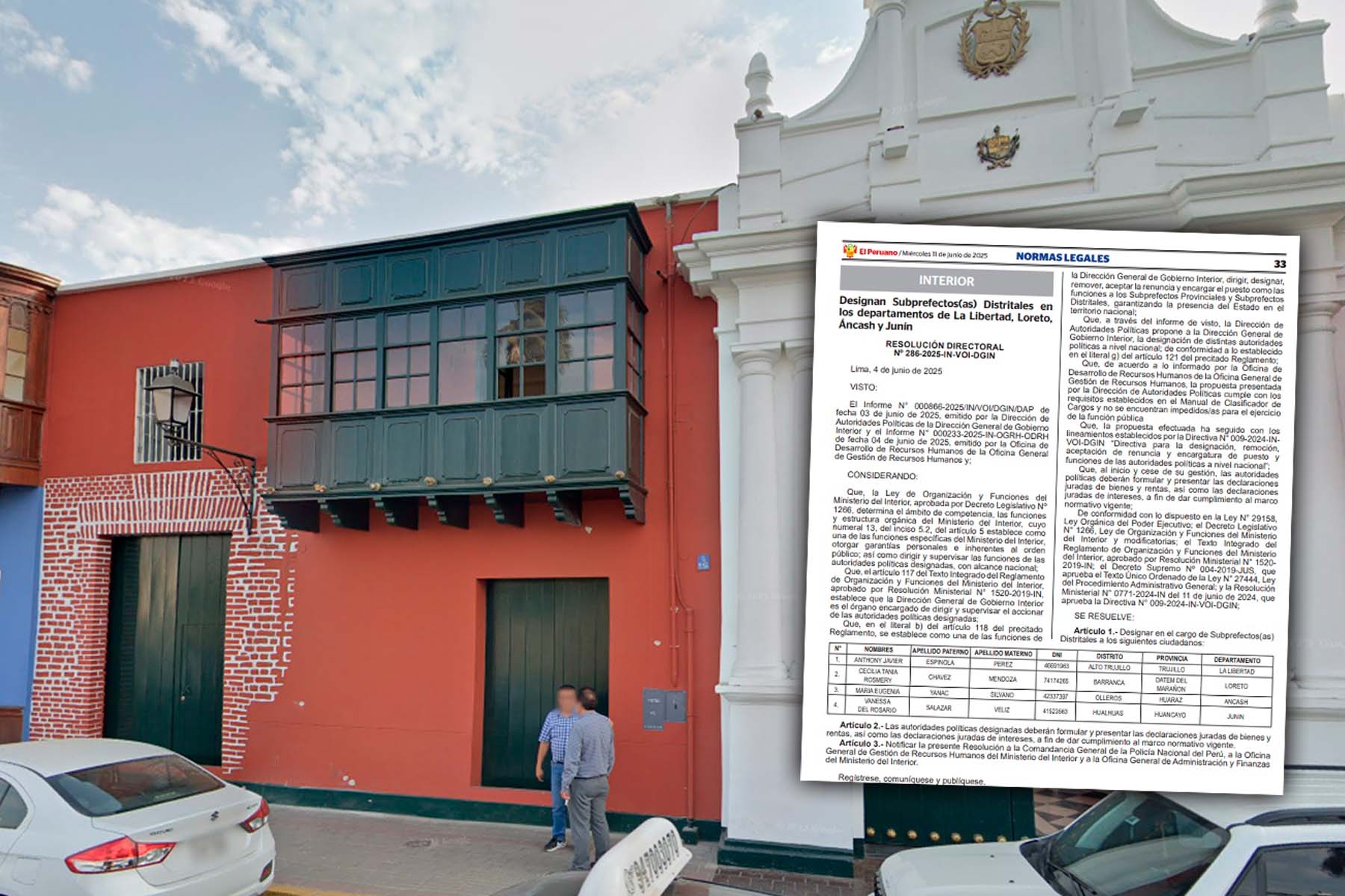 A través de la Resolución Directoral N° 289-2025-IN-VOI-DGIN, el Ministerio del Interior (Mininter) designó a los nuevos subprefectos de Trujillo, Alto Trujillo, Víctor Larco y Pacasmayo.