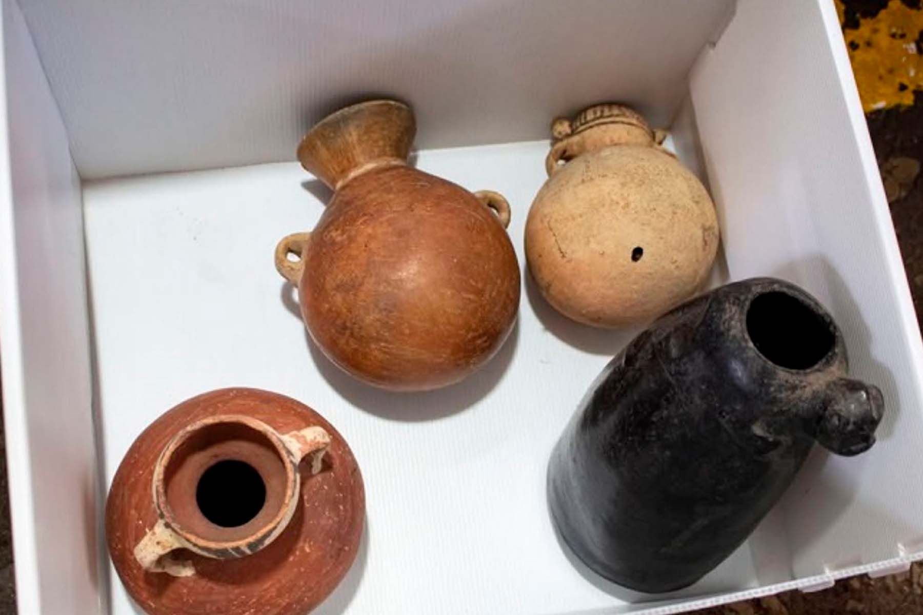 La intervención, que se realizó de manera inopinada, permitió recuperar seis cántaros y dos botellas, los cuales podrían estar vinculados a las antiguas culturas Lambayeque, Chimú y Chancay.