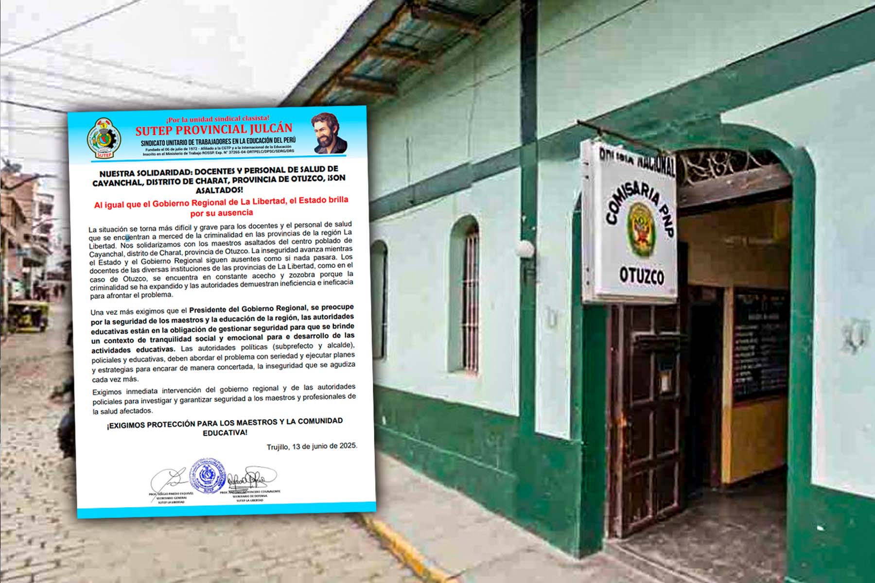 Ante esto, el Sindicato Unitario de Trabajadores en la Educación del Perú – SUTEP La Libertad cuestionó la falta de resguardo policial en la zona y exigió la inmediata intervención de las autoridades regionales y policiales para garantizar la seguridad de los docentes.
