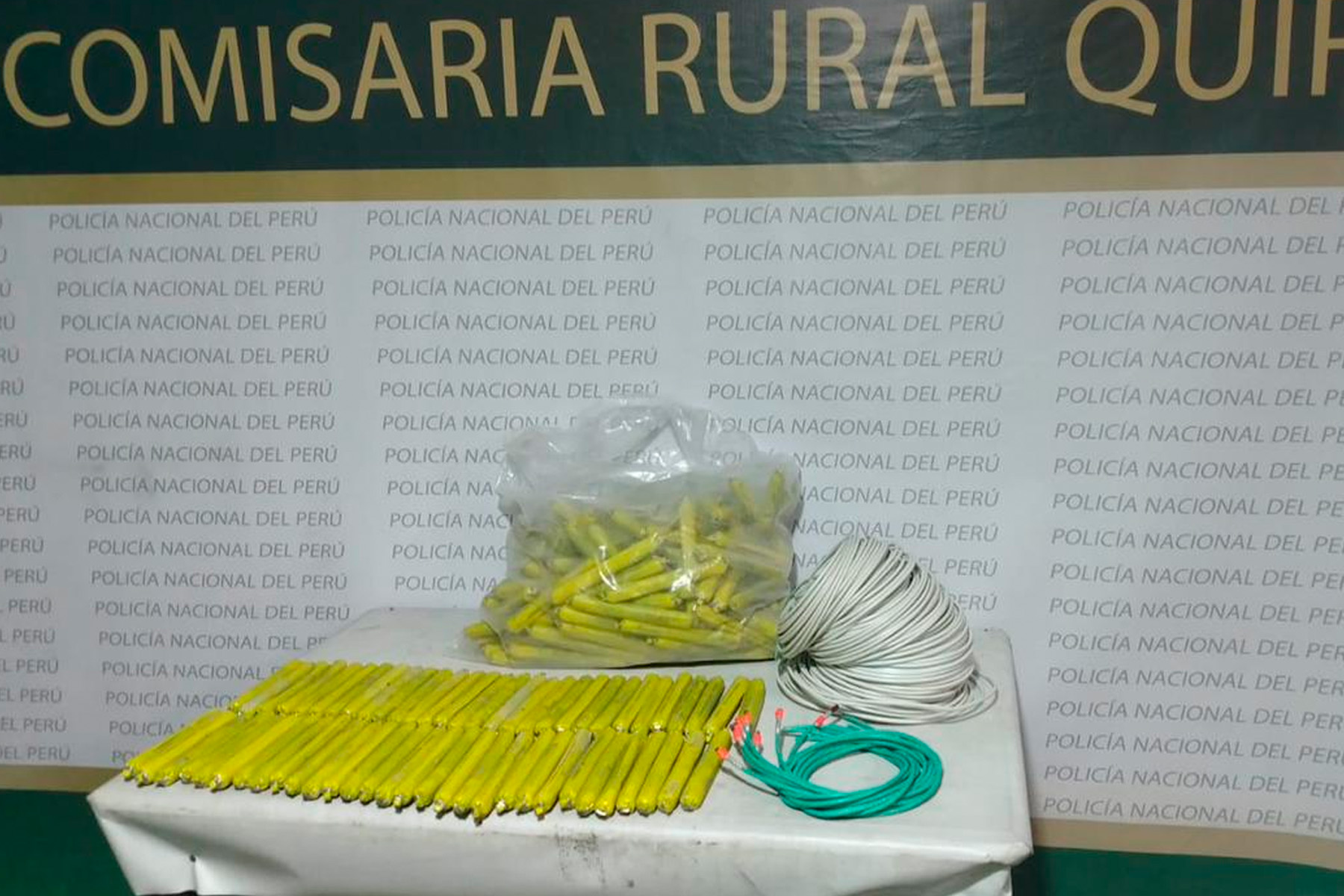 La intervención, que contó con la participación de ronderos y otros ciudadanos, se ejecutó en un socavón en el distrito de Quiruvilca, donde se incautó una bolsa plástica que contenía 230 unidades emulsión explosiva color amarillo, 200 metros de mecha de seguridad y 9 mechas de color verde sin fulminante.