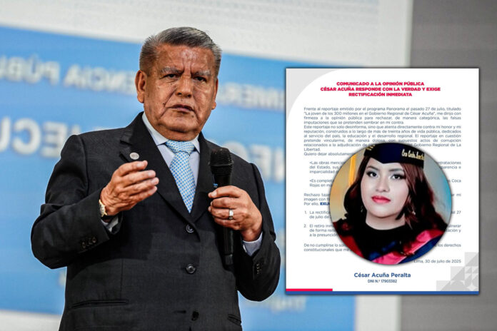 Asimismo, el reportaje periodístico señaló que Juan Carlos Coca Rojas, padre de la joven empresaria, se reunió en marzo de 2024 con el gobernador regional de La Libertad, César Acuña, antes que se adjudicaran los millonarios contratos.