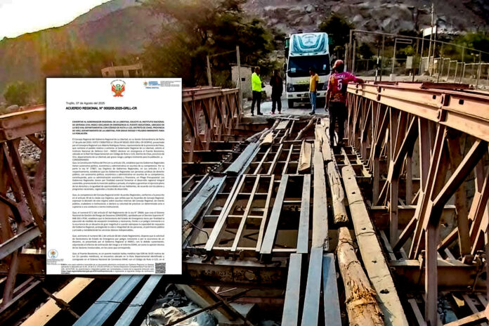 Mediante Acuerdo Regional N° 2025-2025-GRLL-CR, se exhortó al gobernador regional de La Libertad, César Acuña, solicite al Instituto Nacional de Defensa Civil que declare en emergencia el puente Bocatoma, ubicado en el distrito de Chao, provincia de Virú.