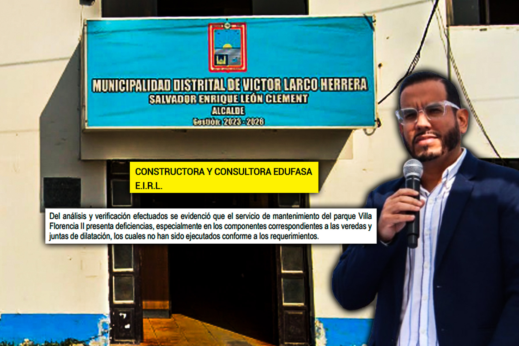 La Contraloría reveló deficiencias en el servicio de mantenimiento del parque Villa Florencia II, valorizado en más de S/ 37mil, que ejecutó la empresa Constructora y Consultora Edufasa, en la Municipalidad Distrital de Víctor Larco, liderada por el alcalde Enrique León Clement.