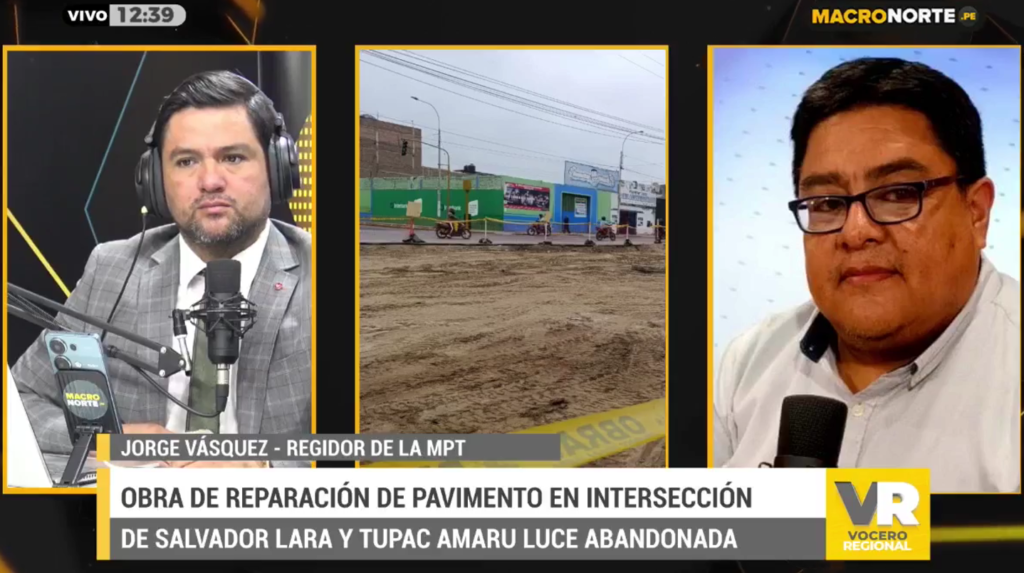 En nuestro programa “Vocero Regional”, el regidor Jorge Vásquez Tirado manifestó que la Municipalidad Provincial de Trujillo habría ocasionado la paralización de los trabajos que viene realizando Sedalib en la avenida España.