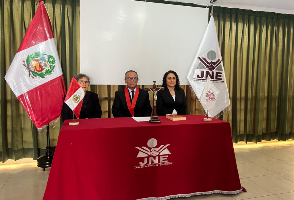 Previamente, el presidente del Jurado Nacional de Elecciones (JNE), Roberto Burneo Bermejo, tomó juramento al presidente del del JEE de Trujillo, Justo Vera Paredes, quien, luego, procedió a juramentar e instalar a su colegiado, conformado por la segunda miembro Gladys María Ramos Urquizo y el tercer miembro, Norma Isabel Mantilla Rodríguez, e iniciaron funciones.