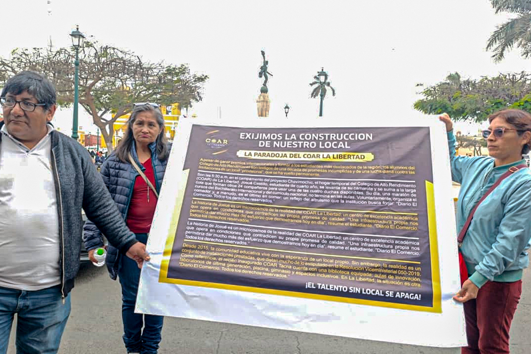 Padres de familia del Colegio de Alto Rendimiento – COAR piden al Gobierno Regional de La Libertad la reconstrucción de su infraestructura, debido a que, los alumnos vienen estudiando en pésimas condiciones.