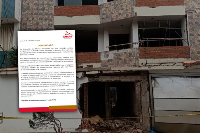 A través de un comunicado, la Asociación de Minero Artesanales del Perú (AMAPE) rechazó y condenó el atentado a la vivienda ubicada en la urbanización Las Quintas, en Trujillo, la cual es propiedad de una empresaria minera.
