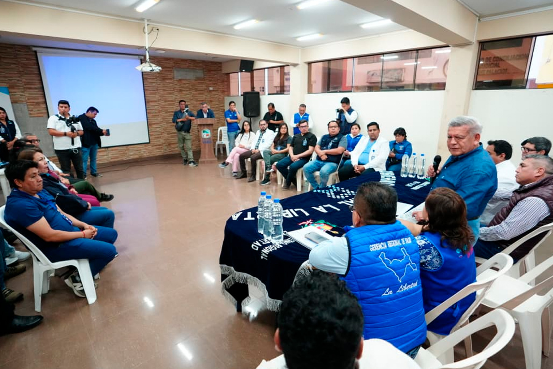 Durante el encuentro con los directores de los centros de salud de la Red Integral de Salud (RIS) de la provincia de Virú, la autoridad regional señaló que mediante gestiones realizadas ante el Poder Ejecutivo ha logrado para el próximo año la asignación presupuestal de S/ 150 millones para contratar a 2,500 profesionales de la salud.